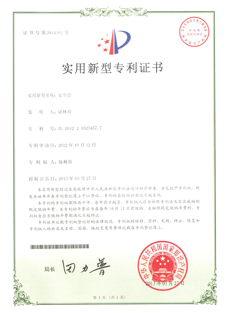 為了解決男女性生活的不和諧因素,廣州市康祥實業(yè)有限公司,歷經(jīng)幾年,發(fā)明了多款新型的安全套,并已成功獲取專利證書。專利的獲得將有利于發(fā)揮康祥公司自主知識產(chǎn)權(quán)優(yōu)勢,繼續(xù)保持行業(yè)技術(shù)領先與提升公司的核心競爭力,使康祥公司發(fā)展得更強更大,并且為世界人民的生殖健康以及“性?!鄙钐峁┍U稀R韵聻椴糠謱@C書介紹: